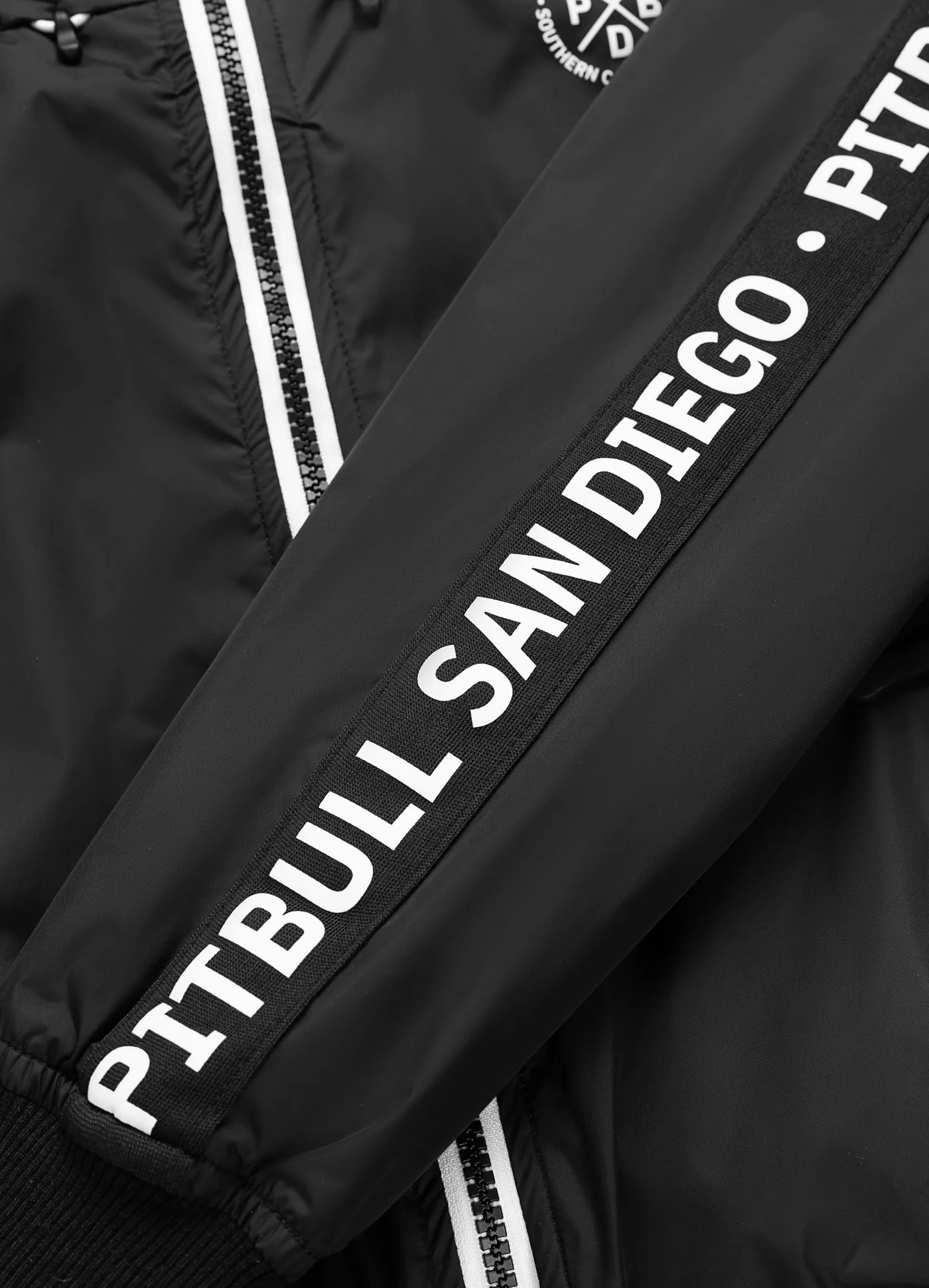 – żakardowe lampasy z napisem PITBULL SAN DIEGO na całej długości rękawów